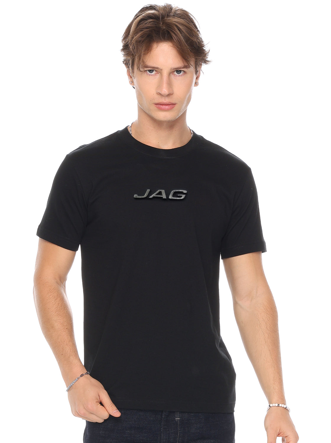 Jag Black Men's Round Neck Vintage Line Logo 33UN2001